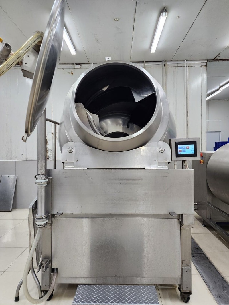 Máy giúp trộn đều thịt xay với mỡ, đá, gia vị, phụ gia tạo độ dẻo và kết dính – yếu tố quan trọng để làm ra giò ngon, dai và đều màu. Nhờ khả năng trộn khỏe và kiểm soát thời gian chính xác, thiết bị giúp xưởng giữ chất lượng ổn định trong từng mẻ sản phẩm.